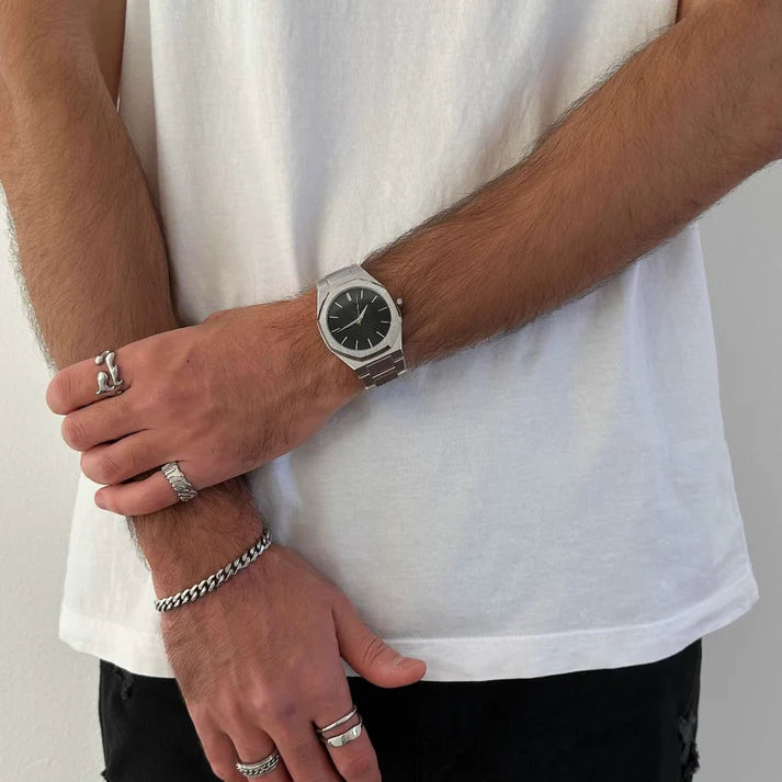 A timepiece that seamlessly blends elegance with functionality. This watch features a sleek design, making it a versatile accessory suitable for both casual and formal occasions. Crafted with high-quality materials, this watch is designed to withstand daily wear while maintaining its polished appearance
